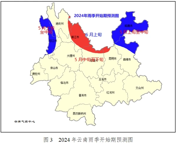 滇西北、滇中、滇東北等地森林火險(xiǎn)等級(jí)高。據(jù)省森林草原防滅火指揮部專家組預(yù)測(cè),今冬(2023年12月至2024年2月)滇西北東部、滇中北部、滇東北等地森林火險(xiǎn)氣象等級(jí)4—5級(jí),滇東、滇中南部、滇西東部等地森林火險(xiǎn)氣象等級(jí)3—4級(jí),其余地區(qū)2—3級(jí)。明春(2024年3月至2024年5月)滇中、滇東、滇東南森林火險(xiǎn)氣象等級(jí)4—5級(jí),滇西北4級(jí),滇西南和滇東北等地為2—3級(jí)。雨季相繼開始后(見圖3),全省大部森林火險(xiǎn)氣象等級(jí)逐漸降低。建議:貫徹好全國(guó)全省森林草原防滅火電視電話會(huì)議精神,落實(shí)各項(xiàng)工作措施,持續(xù)關(guān)注邊境地區(qū)森林火災(zāi)入境隱患,抓好應(yīng)急值班、預(yù)警監(jiān)測(cè)、巡查檢查、隱患排查整治等工作。