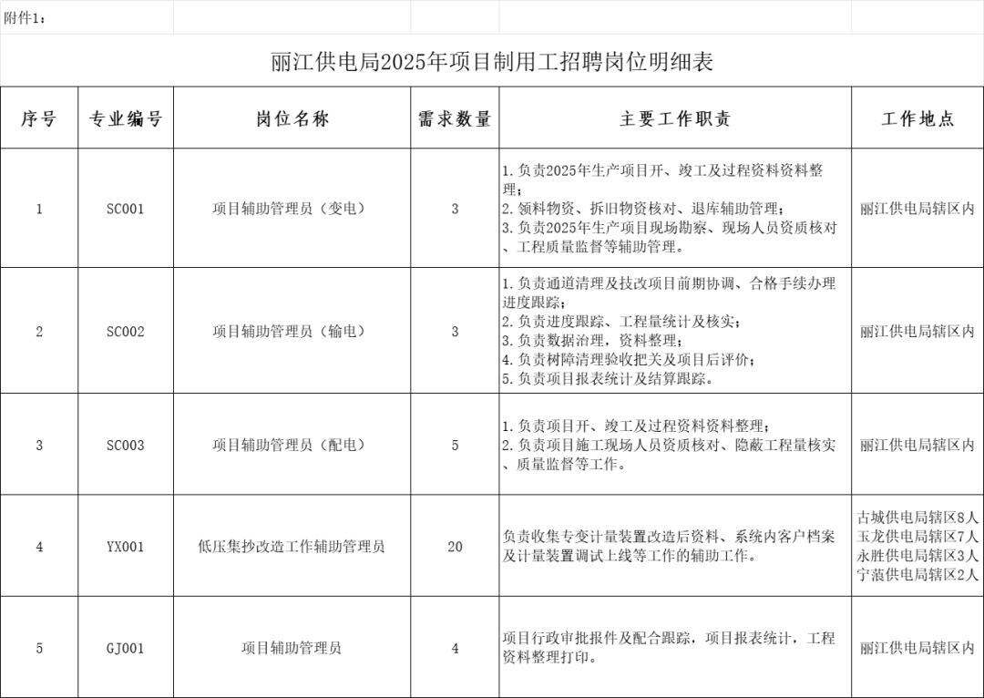 附件1 麗江供電局2025年項目制用工招聘崗位明細表